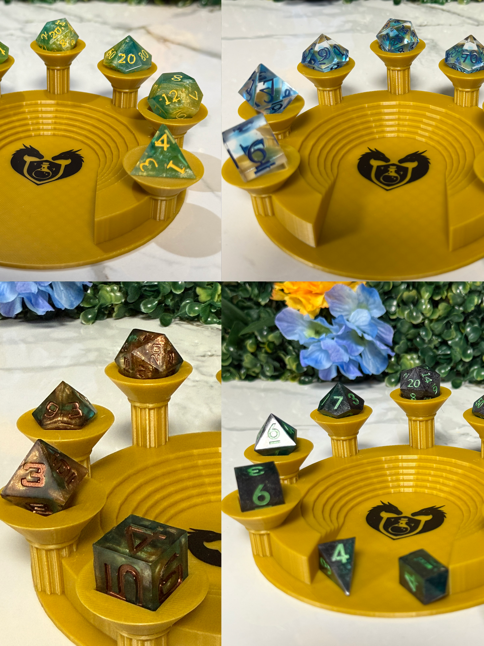 Calling all dice lovers and goblins! Hand poured with love and magic, these dice sets hold beautiful colors, inclusions and inserts.