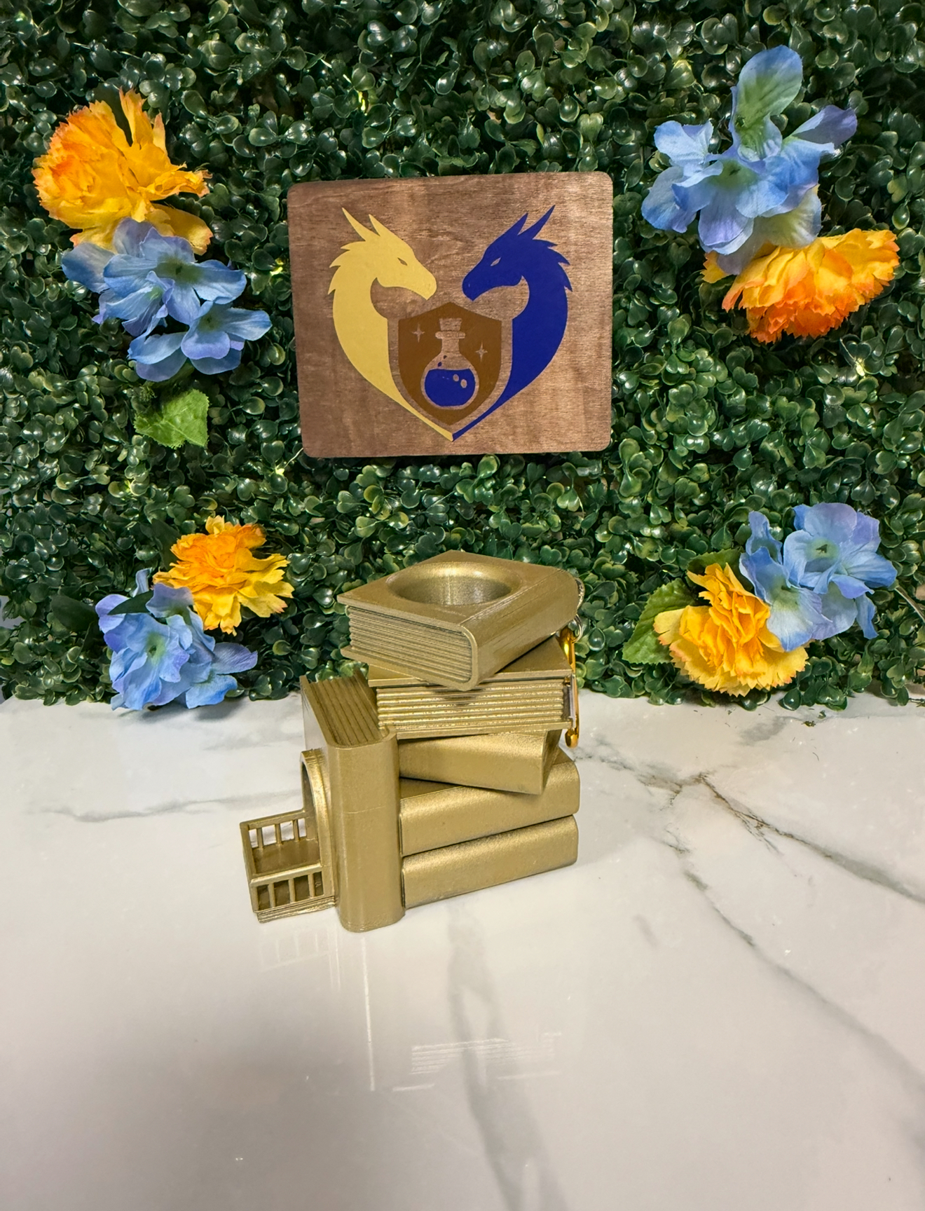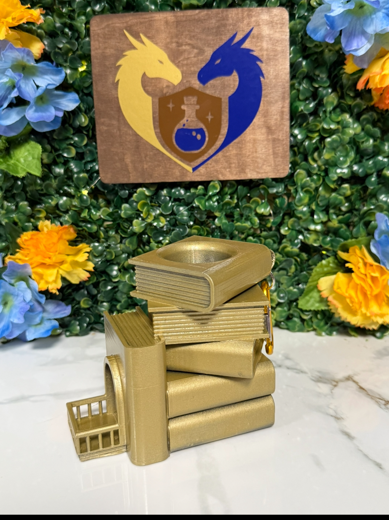 Book Stack Dice Tower Bag Hanger - PAINTED Gold - defect paint