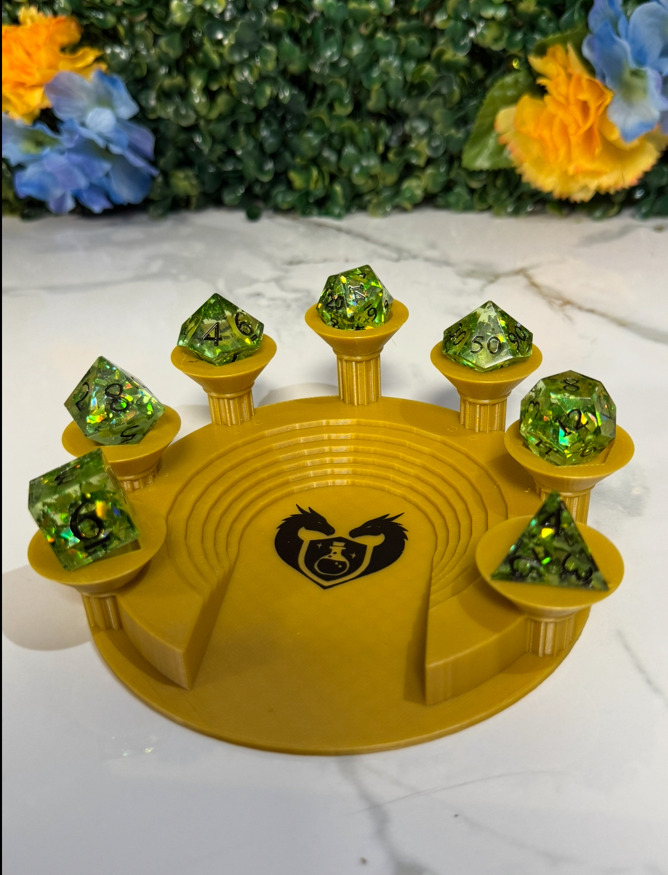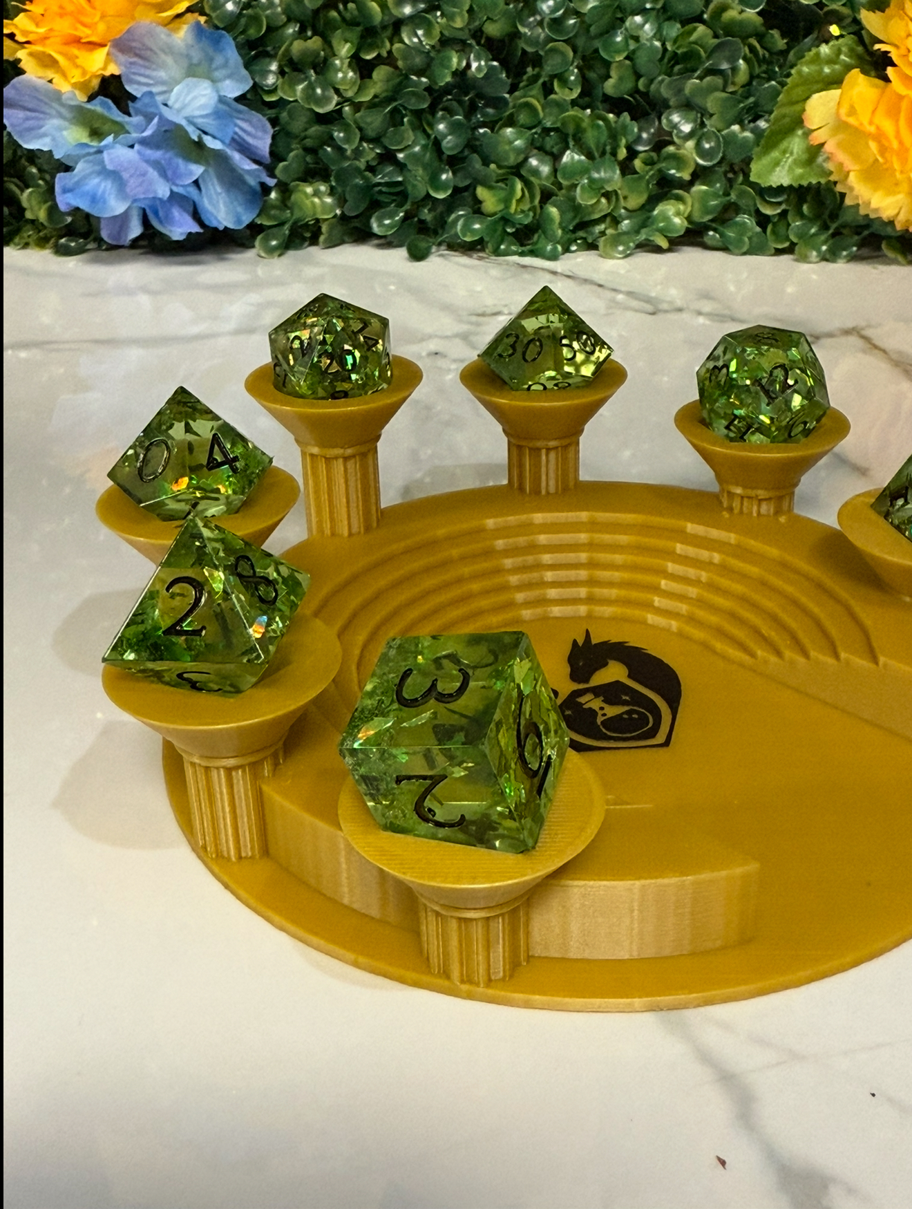 These Dice may have small defects like bubbles/ or an uneven surface. however they still roll great and would be a perfect beautiful addition to your dnd table.