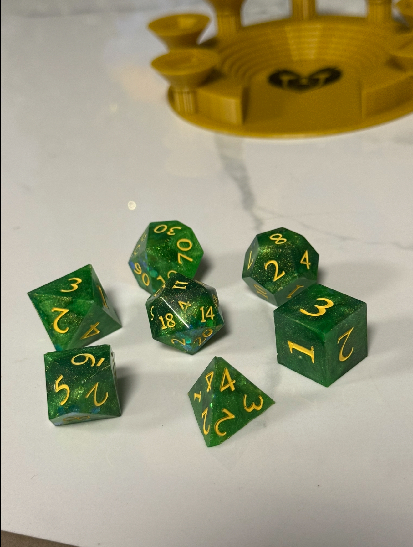 Hand Made Resin Dice - 7Pcs - Green Gummy - Slightly Squishy