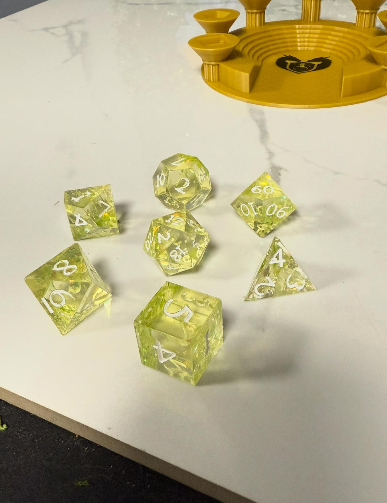 Hand Made Resin Dice - 7Pcs - Yellow Confetti