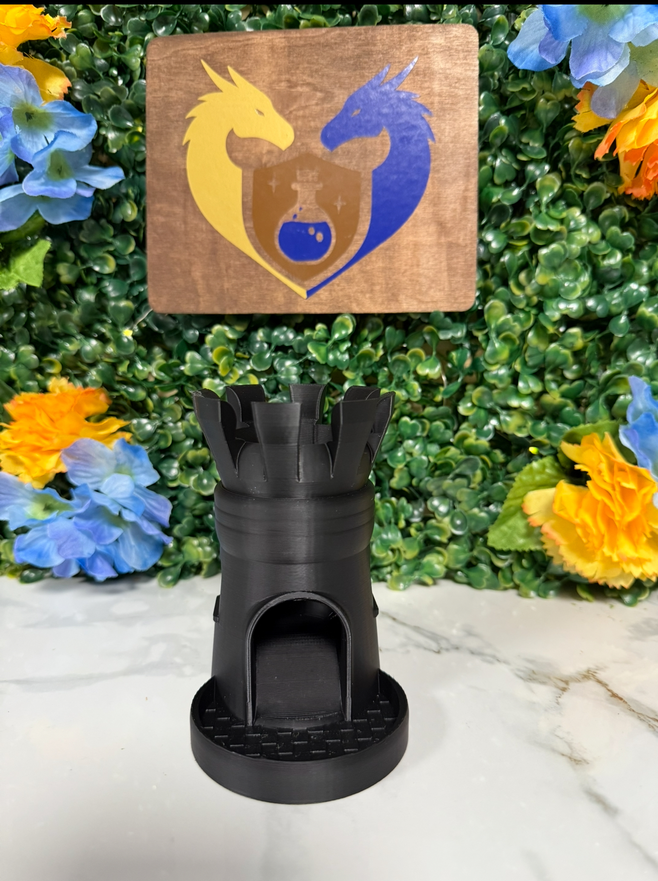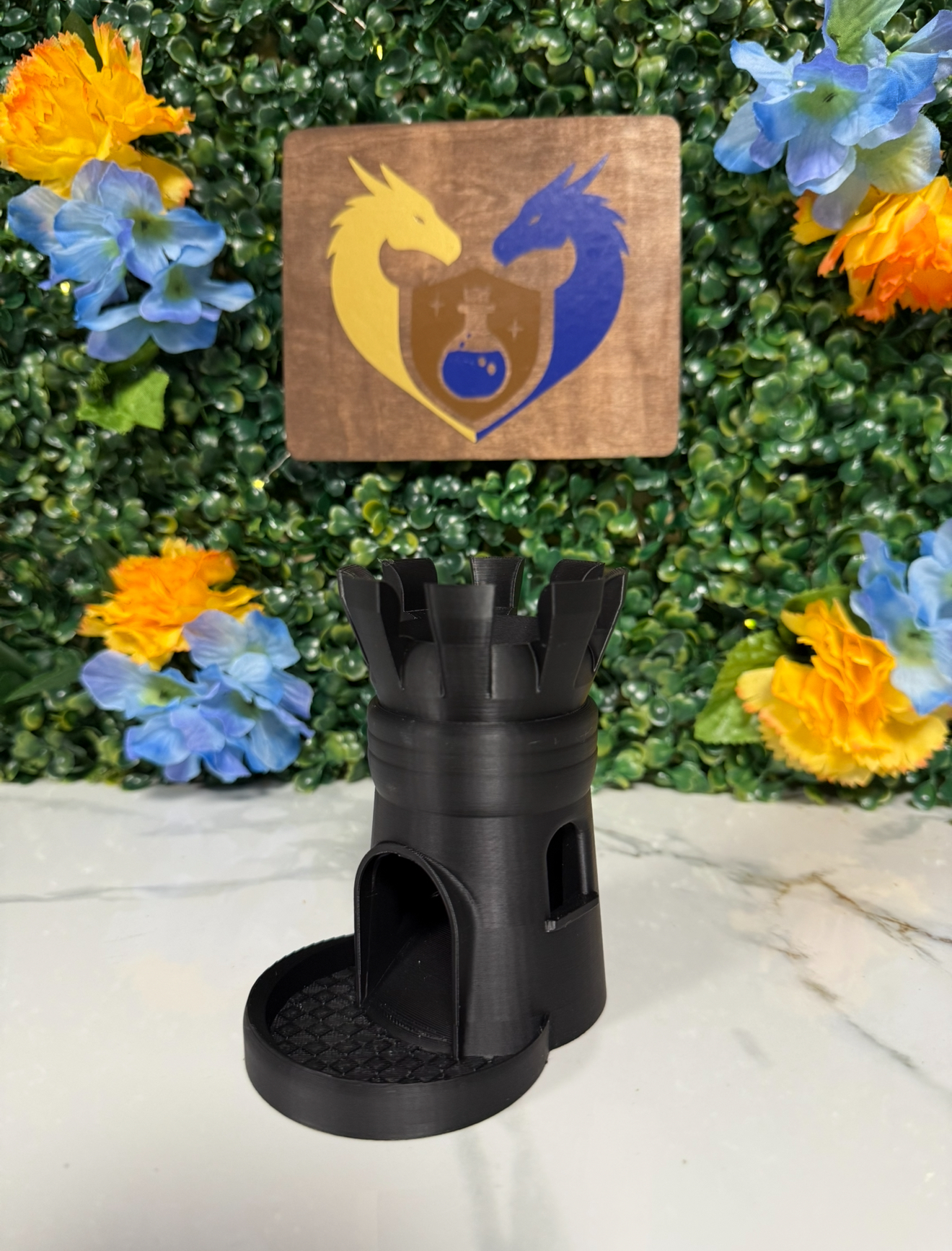This small Pawn Castle is the perfect addition to your dnd table. small enough to not take over your table while still adding a regal touch. built for travel, these dice towers have a carabiner to attach to a backpack or belt for a Ren faire. Easy to paint, Prime, Paint and we recommend a clear coat for durability.